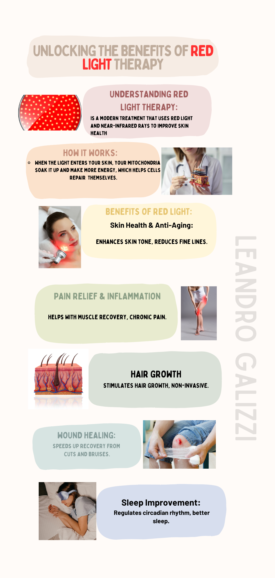 Living in the Swiss Alps exposes your skin to harsh weather conditions and intense UV rays. Red light therapy might be your skin’s new best friend. Studies suggest that it can: